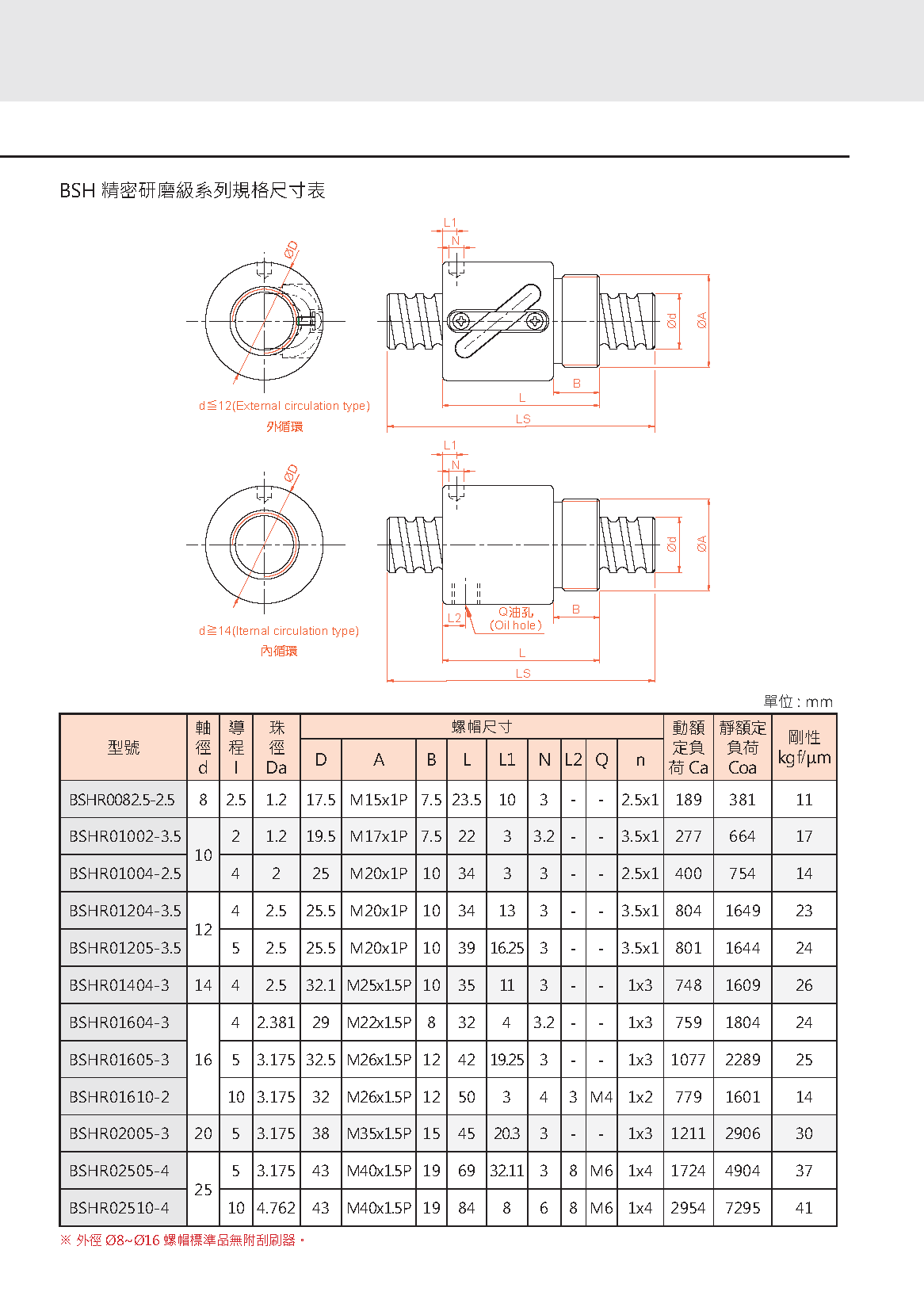 BSH系列精密研磨級滾珠絲杠
