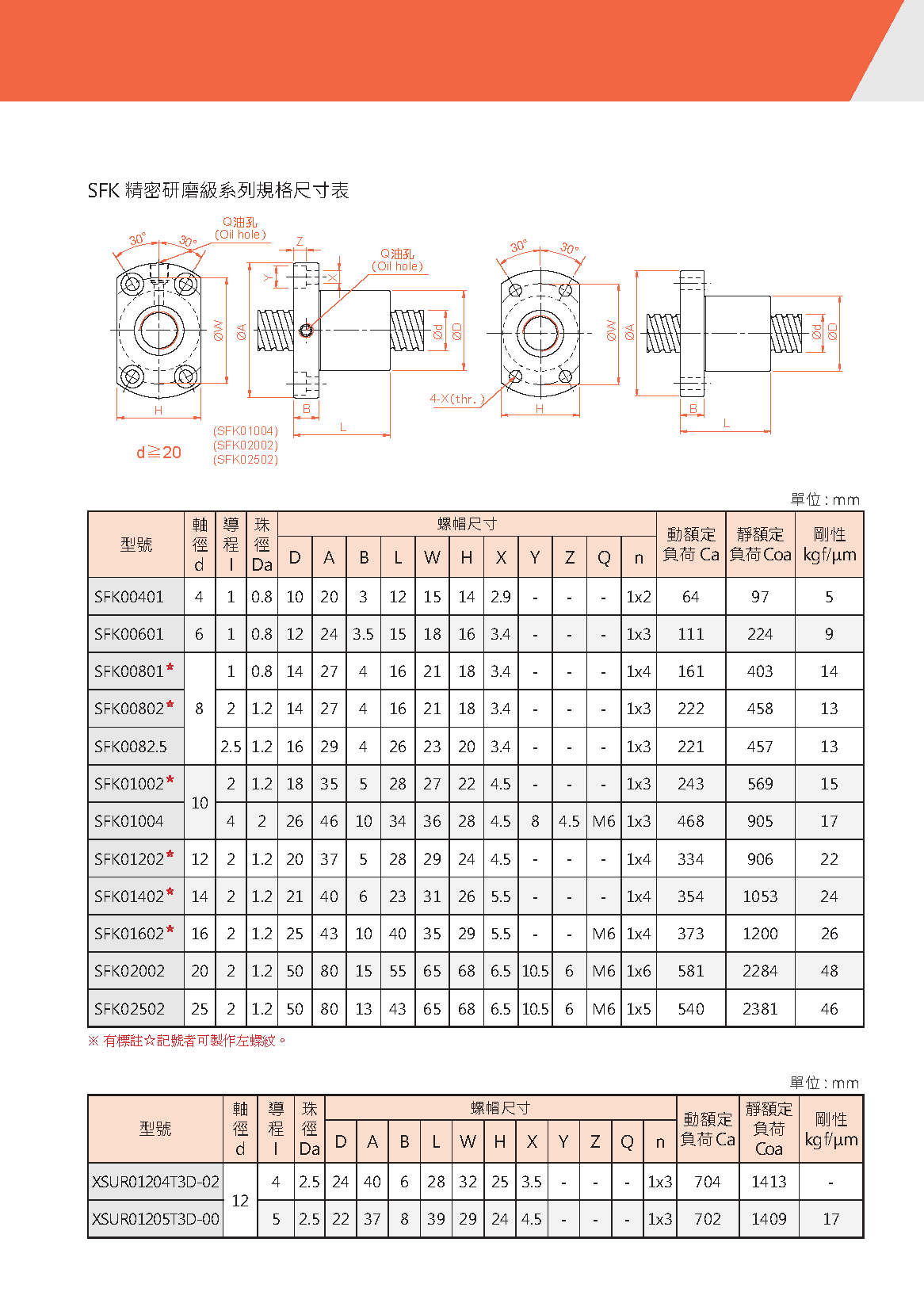 SFK系列精密研磨級滾珠絲杠